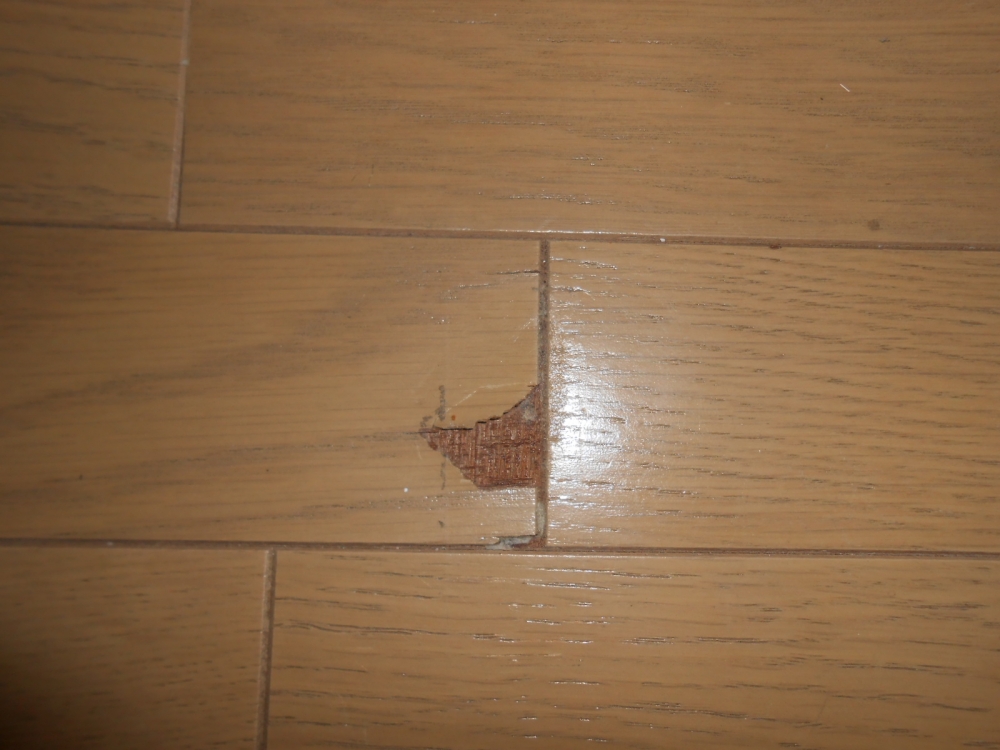 床材が捲れて深い傷になってます。こんなんもご覧のようにきれいに直します。