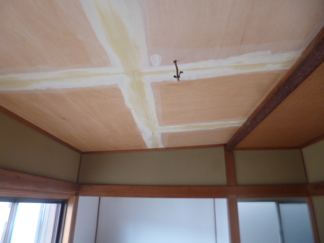 ベニヤのつなぎ目部分に段差があるので、パテ処理して平らにします。
